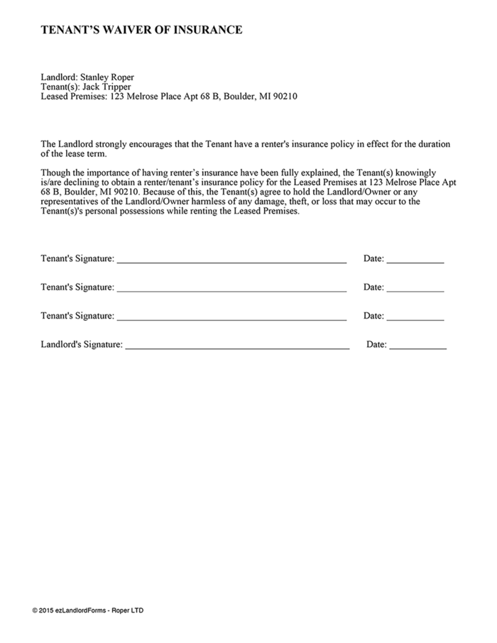 Tenant S Waiver Of Insurance Ezlandlordforms